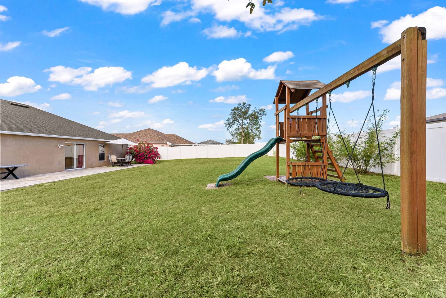 Escape to a peaceful, family-friendly retreat in Spring Hill, FL—perfect for gatherings of all ages. This inviting home features an outdoor swing set, indoor toys, a cozy fire pit, and a spacious fenced yard for pets. A short drive to Gulf Coast gems, enjoy year-round activities: kayak at Weeki Wachee Springs, relax on Pine Island Beach, enjoy fall festivals, or cozy up by the fire pit in winter. Ideal for creating cherished memories, this retreat offers comfort, coastal charm, and adventure.